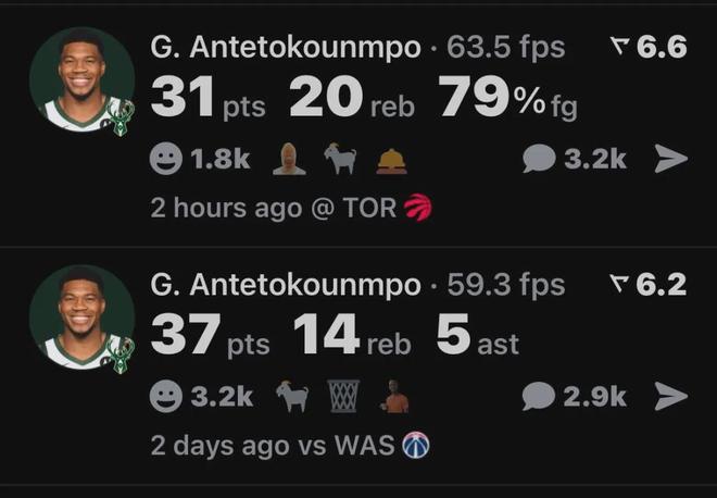 新赛季刚开始的前两场比赛,字母哥就炸了,他在揭幕战面对奇才拿到了37分14篮板5助攻。