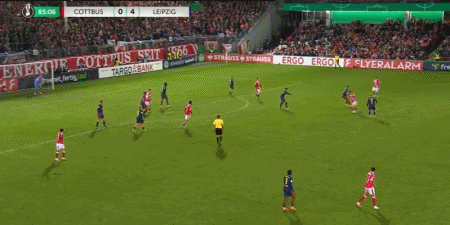 第13分钟,巴卡约科右路内切破门,莱比锡1-0科特布斯