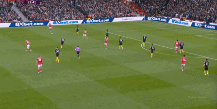 但从战术上来说,诺丁汉森林显然是准备得更充分的一方,因为姆贝乌莫和阿玛德-迪亚洛这一侧的进攻效率并不如此前三场那么亮眼,但诺丁汉森林通过中圈区域的争斗,所形成的进攻和射门相当频繁: