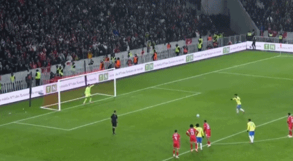 第78分钟,场上出现戏剧性场面,维托尔-罗克禁区内积极反抢,随后被放倒在地,巴西再度获得点球,然而帕奎塔操刀主罚竟然打飞,安切洛蒂苦笑!